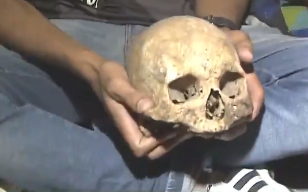 "Estaba en el nicho, lo saqué del nicho. Es la cábala (amuleto que da suerte) de Racing", dijo a la prensa Aranda, que aseguró que el cráneo que sostenía en sus manos era de su abuelo, Valentín.