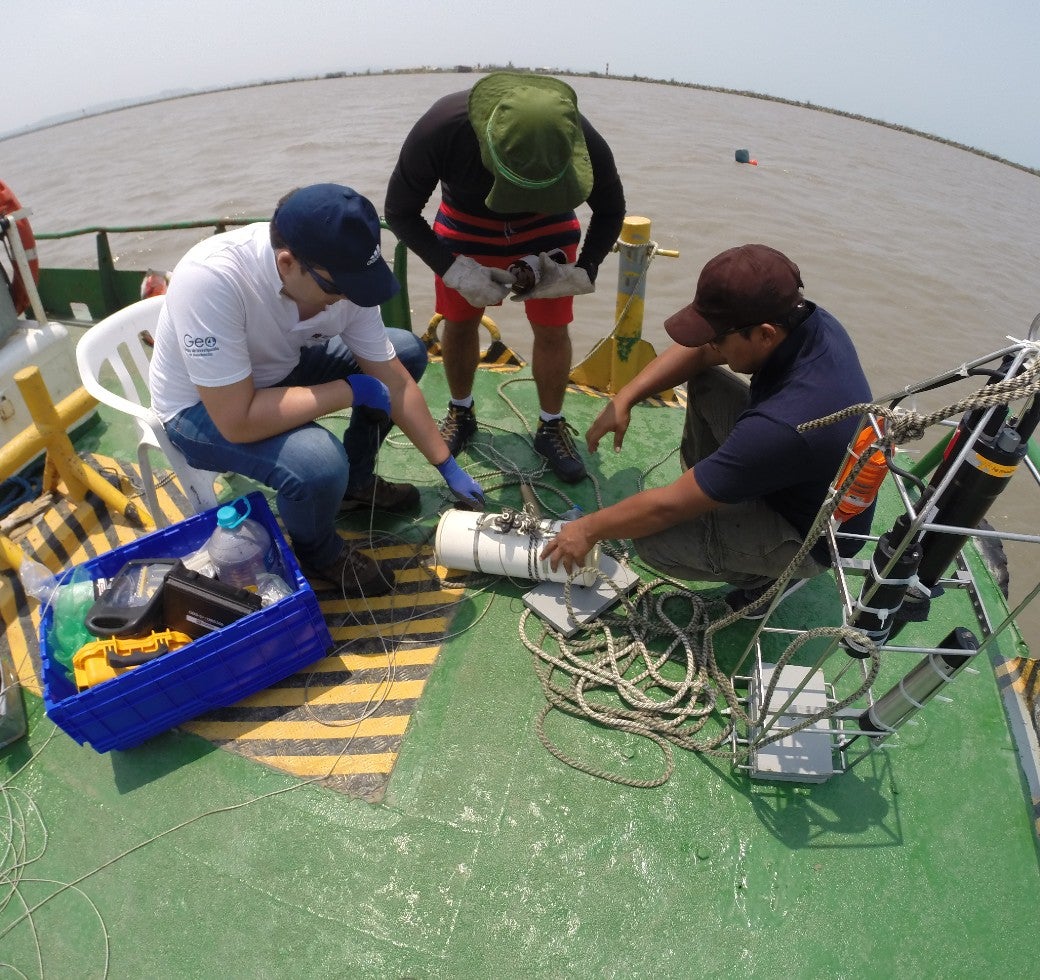Cuando llegué por primera vez a Milagros-Frontera fui incapaz de admirar el paisaje, el entorno, su gente, ni siquiera reparé demasiado en la casa en donde nos íbamos a alojar durante nuestro trabajo de campo. Por supuesto, no había hoteles, hostales o similares. Por intermedio de un excelso Tumaqueño conseguimos alojamiento con su familia. Mi mente estaba centrada en la programación de los equipos y su montaje. Se acababa el tiempo para enfrentar mis temores: ¡dejar en el fondo del mar una suma de dinero que para ese entonces ni siquiera alcanzaba a dimensionar muy bien! Además, una nueva duda acrecentaba mis temores: ¿cómo garantizar que los equipos midieran una vez fueran desplegados en el fondo del mar? Suena extraño, pero los instrumentos de medición oceanográfica (la gran mayoría) no tienen dispositivos de prendido/apagado o luces parpadeantes que permitan saber que funcionan correctamente (¡Algo ha cambiado desde entonces!). Solo se programan, se desconectan, se aseguran y se lanzan al mar. Solo cuando se recuperan y descargan los datos es posible saber qué tan eficiente ha sido toda la operación. Por lo tanto, en el terreno la incertidumbre puede ser abrumadora. Y créanme, no es un asunto menor. Los equipos se fondean en sitios previamente seleccionados, su posición se toma con un GPS y se marca con una boya de señalización. Usualmente se dejan “abandonados” en ese sitio ante la imposibilidad de permanecer indefinidamente allí (por condiciones marinas, de seguridad o porque simplemente el tiempo que estarán desplegados es extenso) o bien porque se deben desarrollar otras maniobras de medición, como en este caso. Por eso, cuando la embarcación se aleja, tras un fondeo exitoso, es imposible que ciertas dudas no asalten la mente: “¿qué hacemos si se pierde la boya de señalización?, ¿el equipo estará midiendo?, ¿qué sucede si se desconectan las baterías?, ¿y qué pasaría si las redes de arrastre de los pescadores se enredan con el montaje?, ¿y si los ilegales que habitualmente merodean por estas zonas imaginan -equivocadamente- que estos equipos son para monitorear o rastrear actividades ilegales?”, entre muchas otras. No obstante, la acción permanente que acompaña las campañas marinas no da tiempo para la excesiva preocupación. Es un ciclo permanente de acción-duda-acción. Lo único que pone fin a este incesante ciclo es la recuperación definitiva de los equipos. Acercarse al sitio de fondeo y visualizar la boya de señalización genera una sensación de bienestar indescriptible (¡tierra, tierra a la vista!), solo superada por el hecho de conectar el equipo al computador y verificar que efectivamente ha recolectado una cantidad apreciable e invaluable de datos de campo. Solo hasta ese momento, después de semanas de arduo trabajo y preparación, tal vez meses, se siente la satisfacción del deber cumplido.