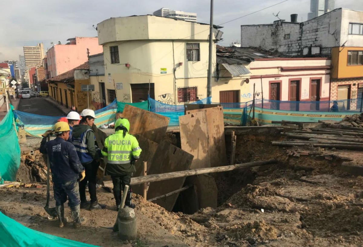 Hueco gigante aparece en calle del centro histórico de Bogotá
