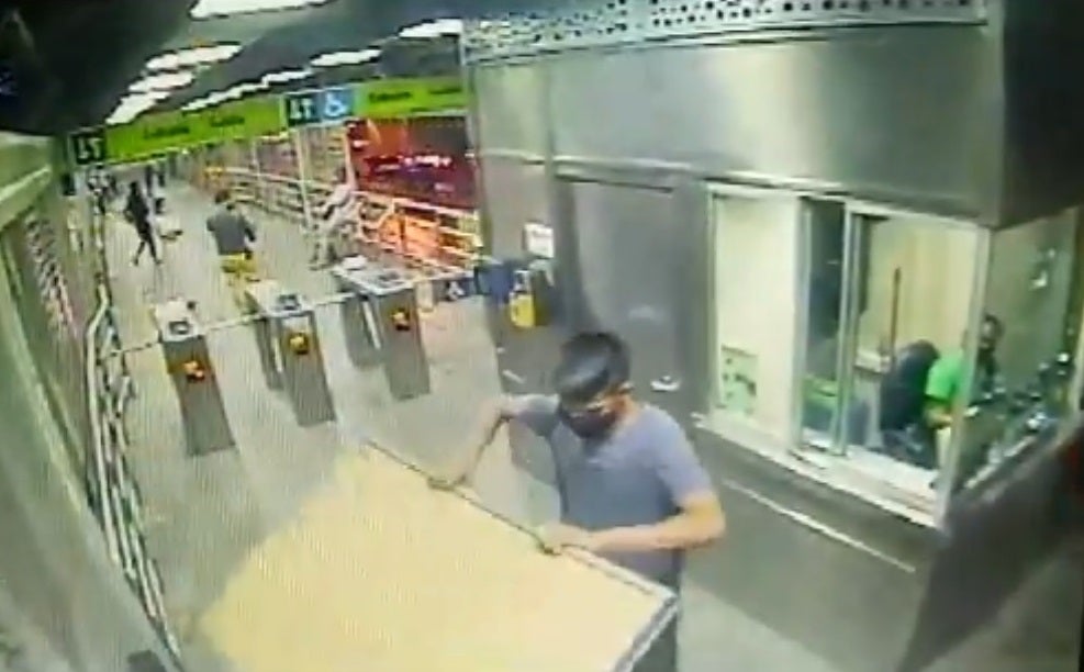 En videos de cámara de seguridad, se observa que el joven ingresa a las estaciones saltándose los torniquetes o por los espacios donde no hay vidrios, de ahí se dirige a las puertas y retira los perfiles de aluminio, y también arranca las estructuras de los mapas que son guías para los usuarios del Metrolínea.