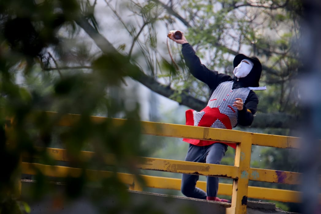 Nuevos enfrentamientos entre encapuchados y la Fuerza Pública se registran este jueves en las inmediaciones de la Universidad Nacional, al costado de la avenida NQS con calle 45. Si bien hubo afectación vial por unos minutos, a la hora, la movilidad se mantiene con normalidad.