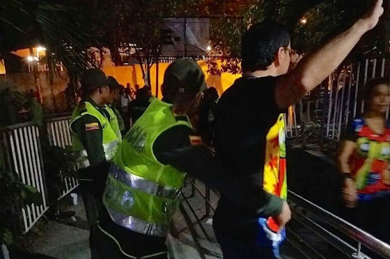 Fue de tal orden la riña que fue necesario que uno de los uniformados desenfundara su arma para disipar al grupo de ciudadanos alterados. Además se ve cómo uno de los uniformados estuvo a punto de ser golpeado con un palo.