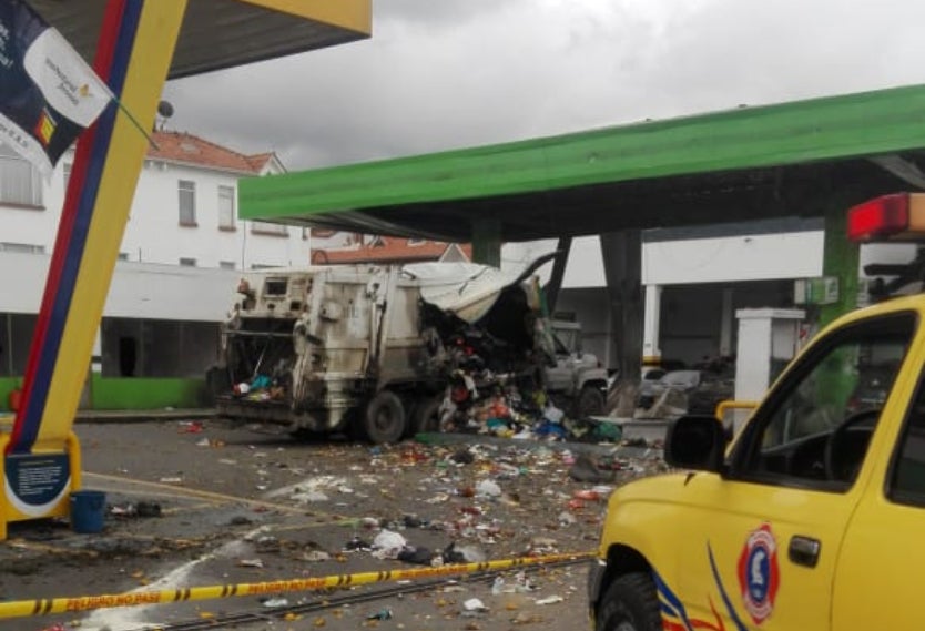 La explosión se produjo, al parecer, al interior de un vehículo compactador de basuras de la Empresa del Servicios Públicos de Chía, que en ese momento se estaba abasteciendo de combustible.