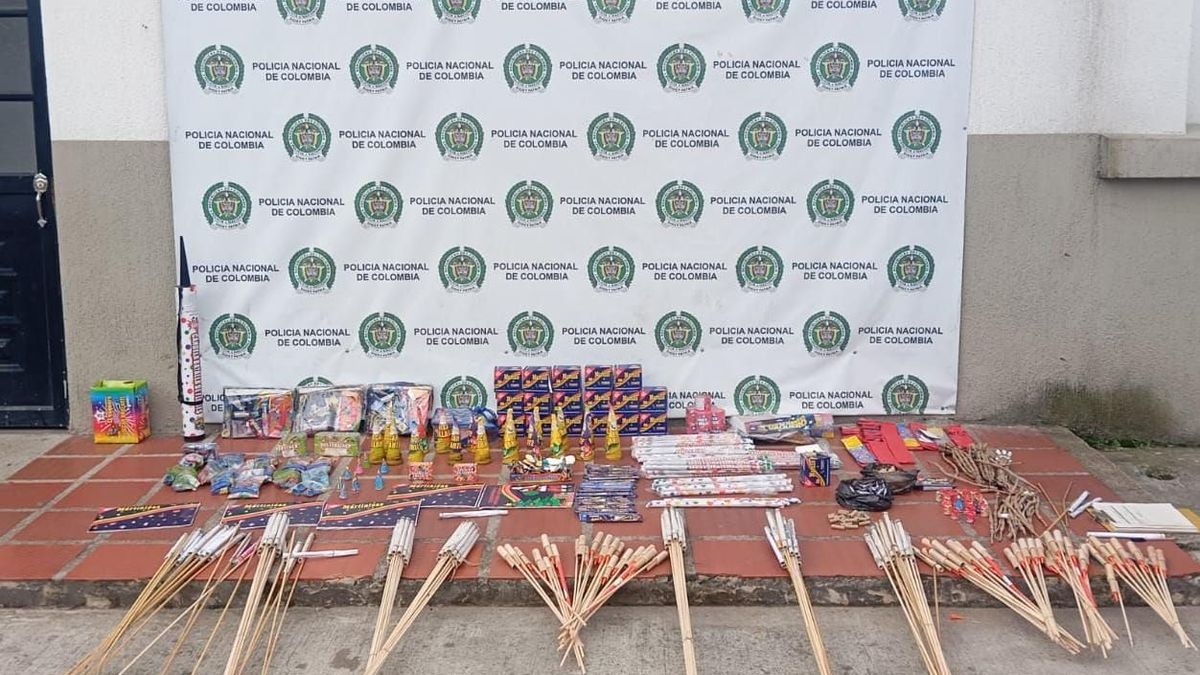 El segundo procedimiento fue posible gracias a la colaboración ciudadana. En el barrio Diana Turbay, la Policía incautó 4.800 unidades de juegos pirotécnicos que estaban listas para su distribución y comercialización en una papelería local.