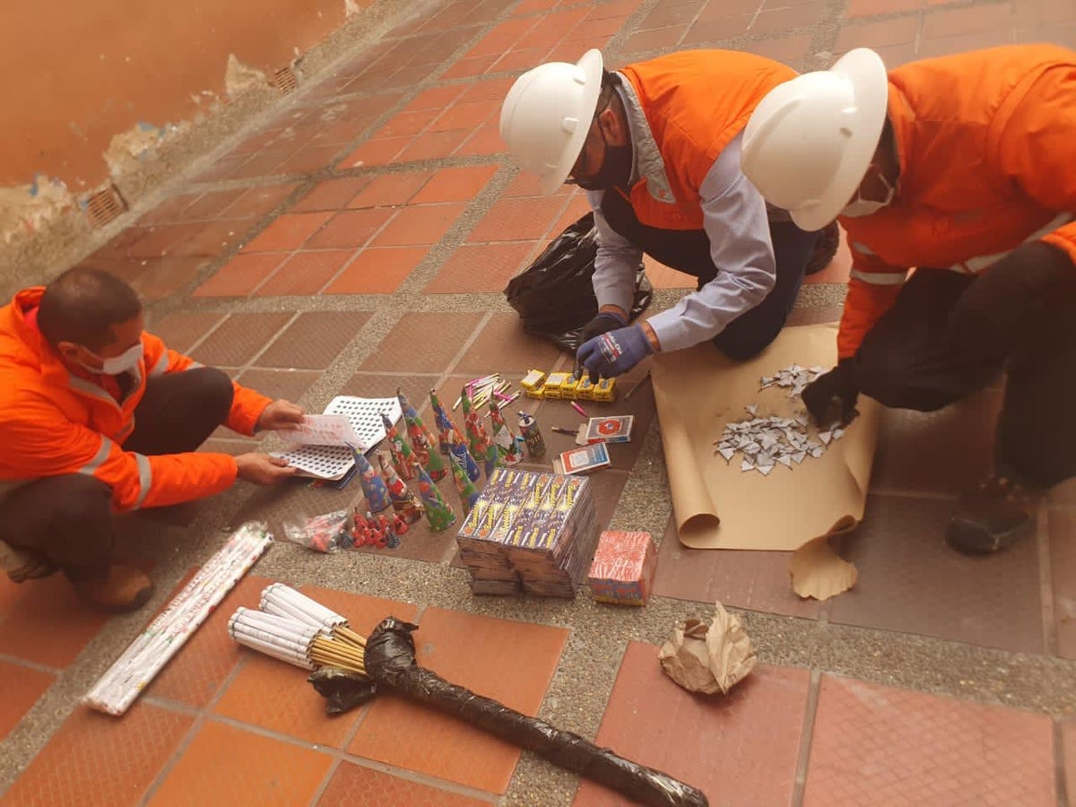 Dentro de los elementos que le fueron incautados se encontraban luces de bengala, voladores, totes, volcanes y los conocidos como marranitos, entre otros, por lo que se puso en riesgo la vida de otros usuarios, según el Distrito.