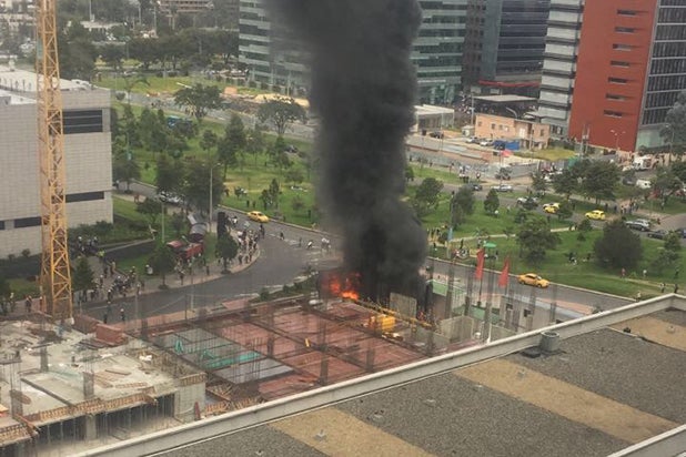 Las imágenes suministradas por el Distrito dan cuenta de que las llamas se originaron en una valla de entrada a un apartamento modelo, ubicado detrás del mencionado centro comercial.