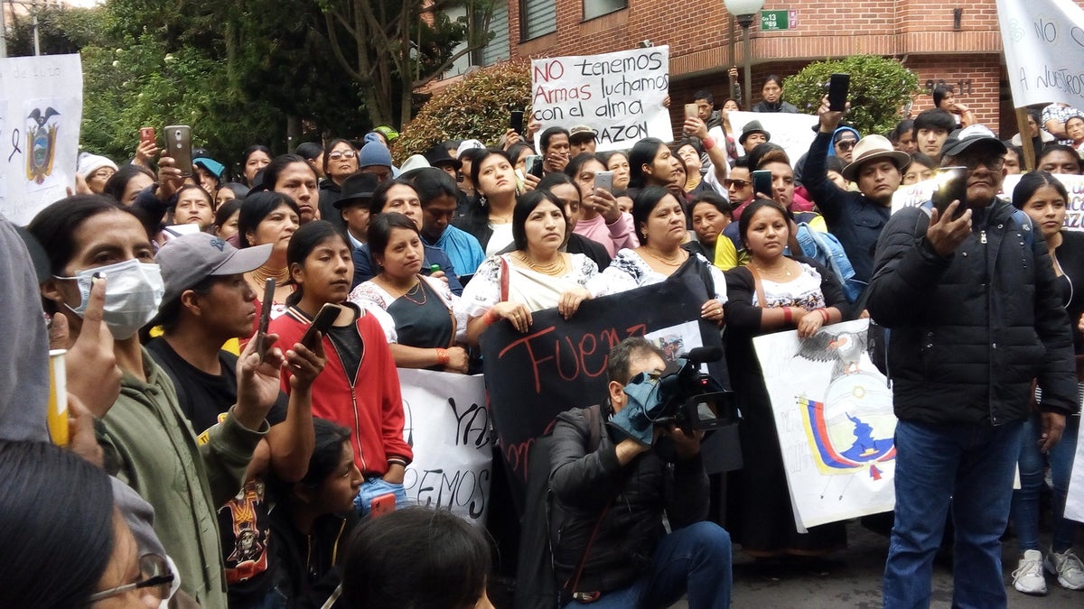 Indígenas ecuatorianos protestaron ante embajada en Bogotá