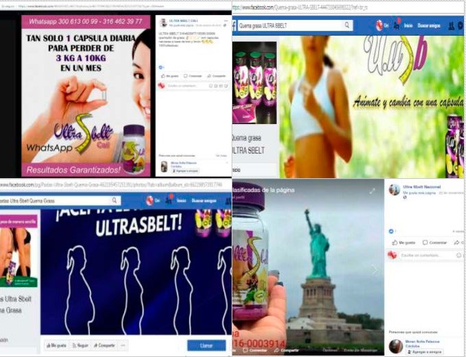 El Invima destacó que dentro de los perfiles eliminados se encuentran productos para “quemar grasa” y lograr perder peso, de la marca Ultrasbelt – U.USB con diferentes presentaciones y comercialización en varias ciudades de Colombia.
