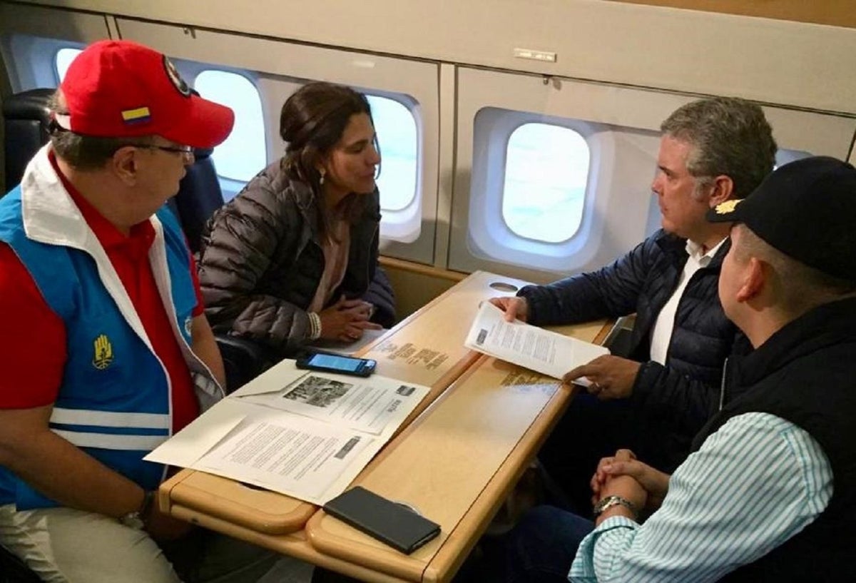 El presidente Iván Duque viajó a Rosas (Cauca) con una comisión integrada por los ministros Jonathan Malagón (Vivienda), Ángela María Orozco (Transporte), el Instituto Colombiano de Bienestar Familiar (ICBF) y la Unidad de Gestión del Riesgo.