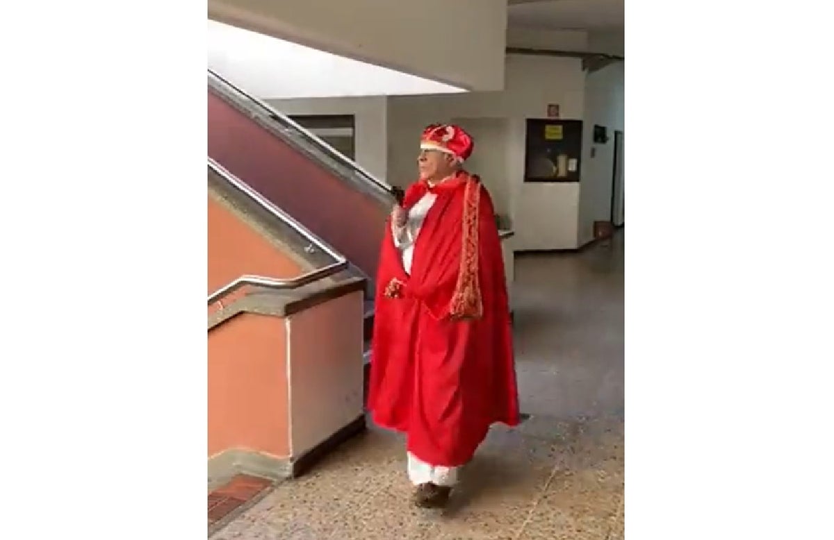 Un juez en Bucaramanga, disfrazado como miembro de la inquisición, realizó una curiosa protesta en el Palacio de Justicia de Bucaramanga, en rechazo a las amenazas de muerte recibidas por varios procesos.