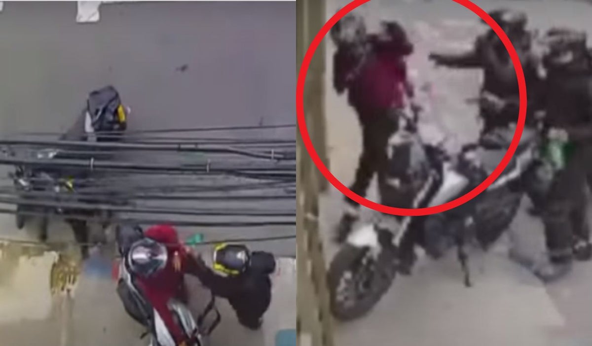 El impactante momento quedó registrado en las cámaras de seguridad de la vivienda de la víctima quien en plena luz del día se encontraba guardando su moto en el parqueadero cuando los dos ladrones lo interceptaron.