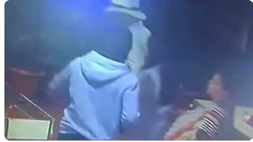 En cámaras de seguridad quedó grabado el momento en el que cuatro hombres encapuchados llegan en una camioneta a un restaurante al borde de la carretera y descienden del vehículo. Luego ingresan al establecimiento e intimidan con un arma de fuego a uno de los meseros, que está a punto de servir la comida.