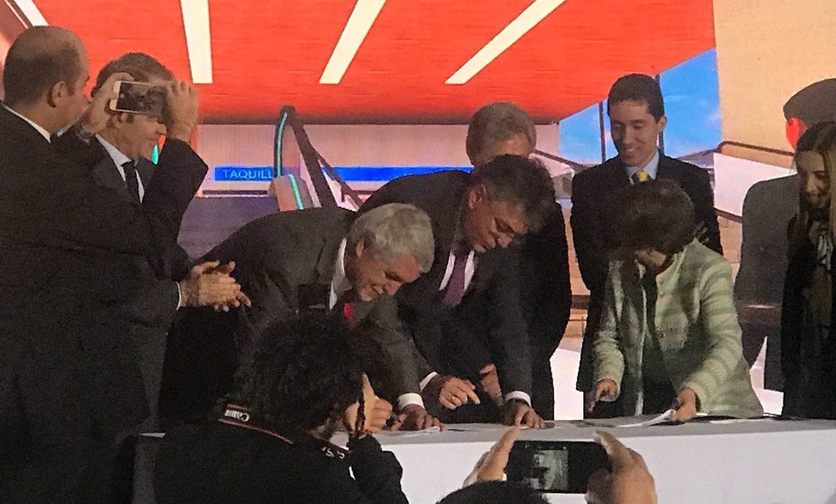 “Aquí no estamos hablando de palabras, aquí estamos hablando de hechos porque con lo que firmamos es un metro que queda totalmente asegurado, irreversible”, dijo.