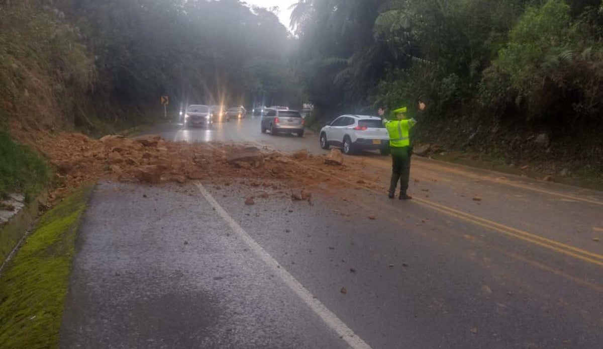 Varias localidades quindianas presentan alerta roja por amenaza de deslizamientos y algunos afluentes están en riesgo por crecientes súbitas, por eso no se baja la guardia con los monitoreos en cada uno de los municipios. Crédito: Foro archivo Policía Nacional Quindío