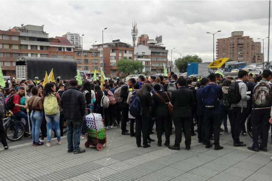 Así mismo, se unirán mientras caminan, con los estudiantes que salen desde la Universidad Nacional, Pedagógica y Javeriana. Desde la Universidad Nacional partirán hacia el centro de la ciudad desde la entrada de la Calle 26 para unirse con los docentes.