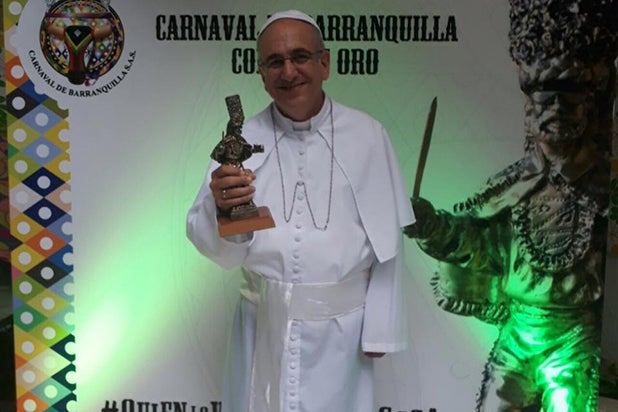 El politólogo barranquillero Vive en Barranquilla y personifica al Sumo Pontífice en el Carnaval de Barranquilla.