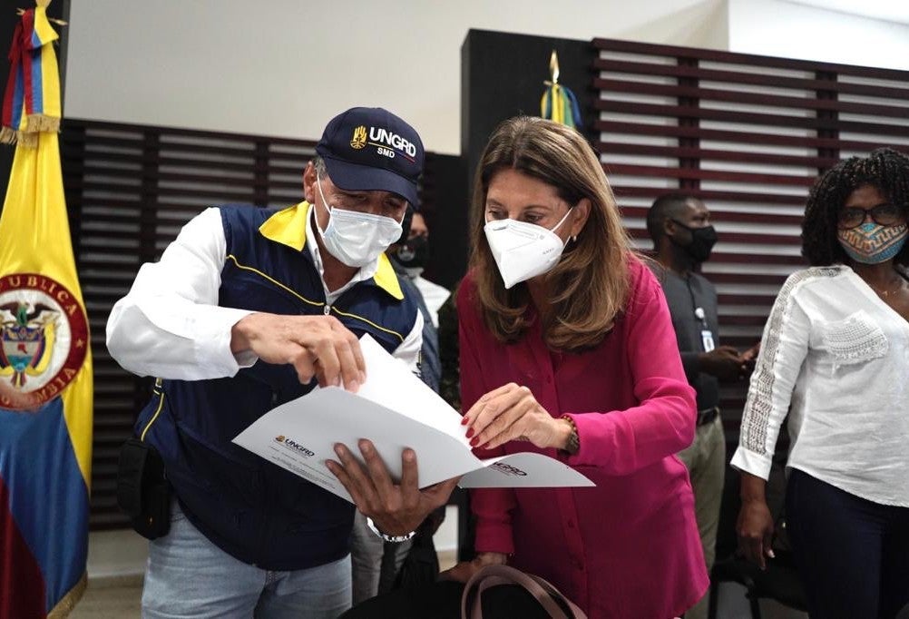 Desde Quibdó, la vicepresidenta Marta Lucía Ramírez lideró el Puesto de Mando Unificado (PMU), donde se continúa haciendo el balance de la situación de las 7.500 familias, conformadas por unas 30.000 personas, que están damnificadas debido a la ola invernal.