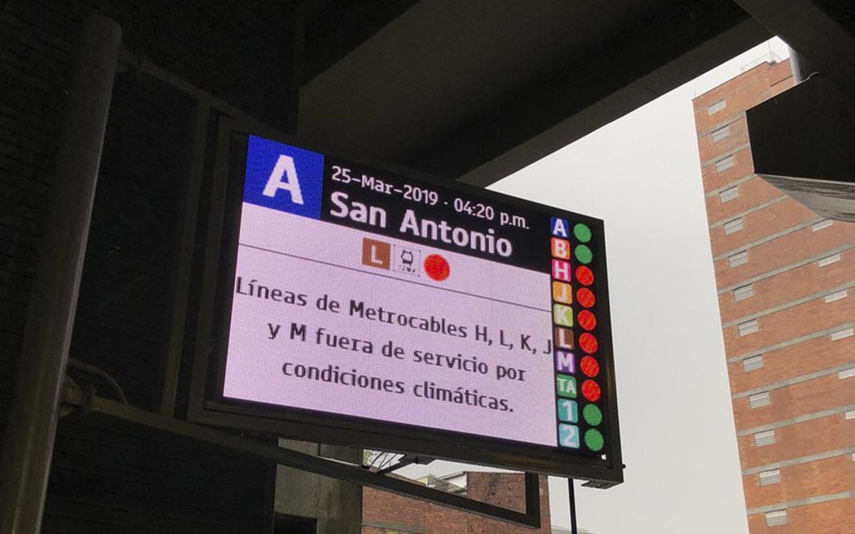 El servicio en los Metrocables quedó suspendido por los fuertes vientos.