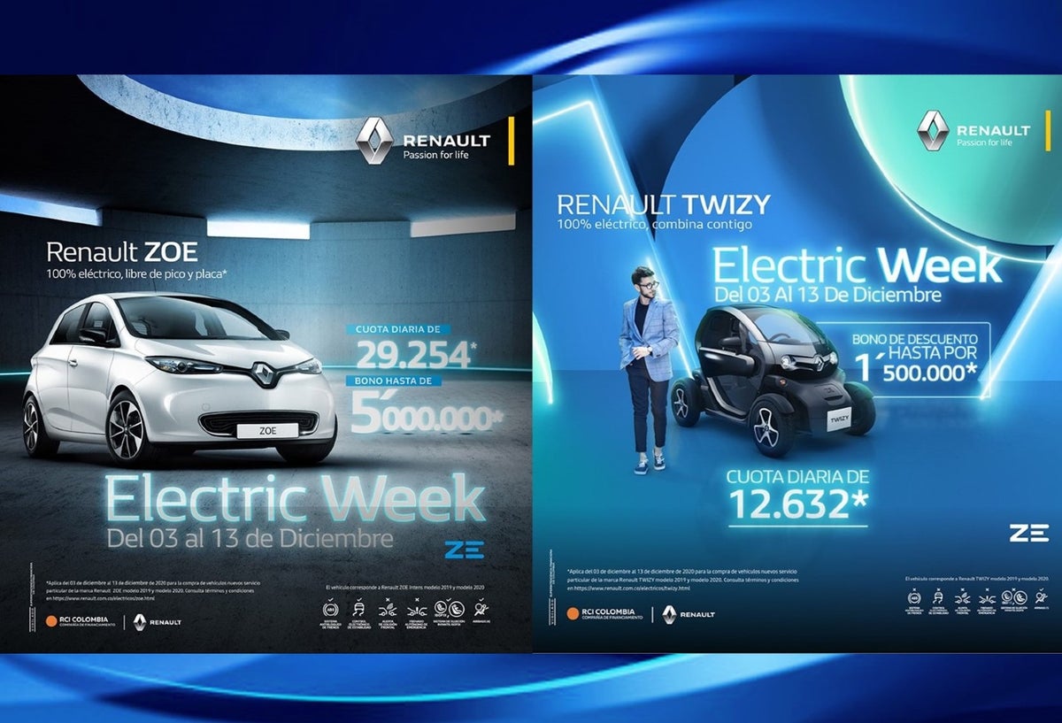 Hace tan solo un par de días estábamos en Black Week, con descuentos y promociones en todo tipo de producto, pues en esta ocasión para los amantes del transporte inteligente tenemos la oportunidad de participar del Electric Week en Renault, donde podrás llevarte un Renault Twizy o Renault ZOE con Bonos hasta $5.000.000, o si prefieres cuotas diarias de $12.632 para Twizy y $29.254 en ZOE.