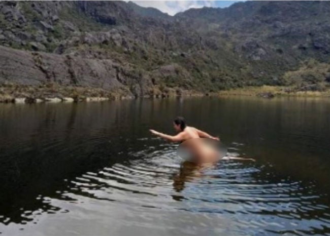 Molestia e indignación ocasionó en algunos santandereanos, la actitud de una mujer que decidió bañarse desnuda en una de las lagunas que componen el páramo de Santurbán y tomarse algunas fotografías.