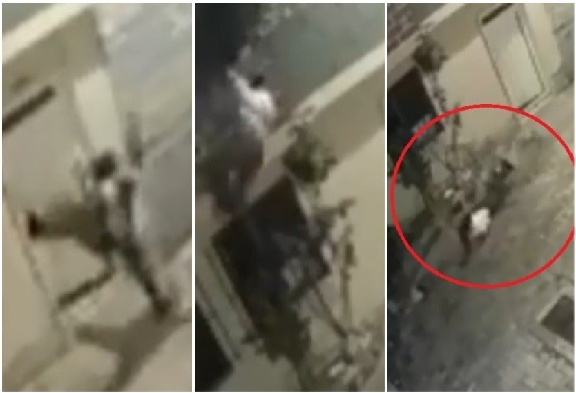 A través de un video de una de las cámaras de seguridad del conjunto residencial, se ve al sujeto llegar, al parecer bajo los efectos del alcohol. Comienza a gritar y a patear la puerta de su casa hasta tumbarla. En ese momento, cuando la mujer se da cuenta que su esposo ingresó al predio, sin pensarlo se lanza desde el balcón.