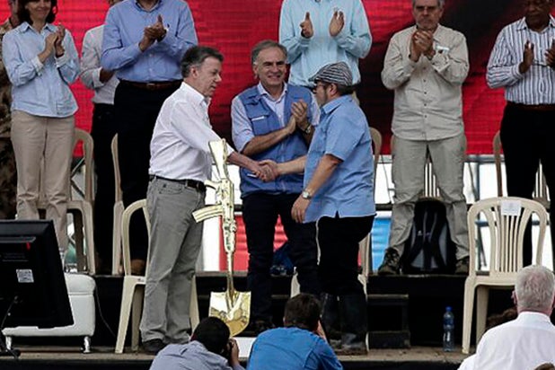 "Hoy con el pleno conocimiento de la eficiencia del mecanismo (tripartito de verificación) podemos recomendar a las Naciones Unidas que recoja las enseñanzas de Colombia para aplicarla en otras partes del mundo", añadió.