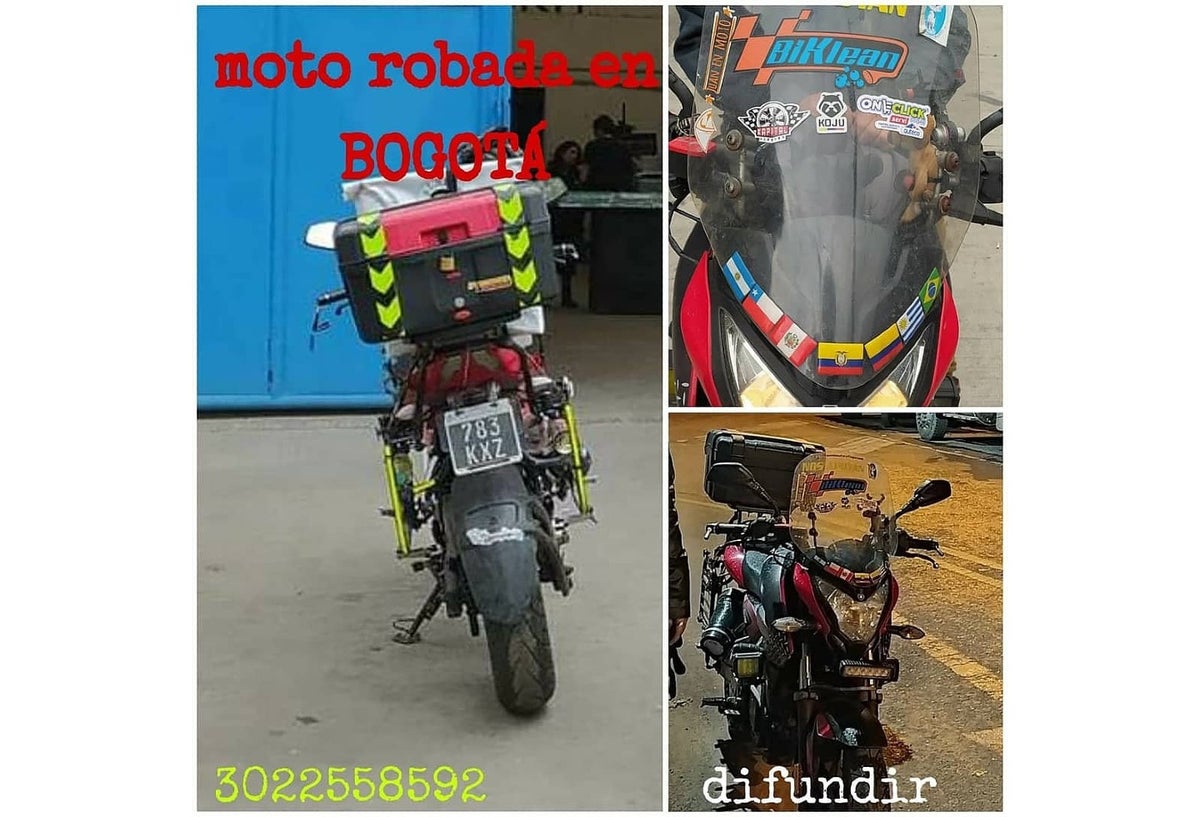 El pasado 12 de febrero una pareja de turistas llegó a Bogotá, después de un largo recorrido que inició en Argentina y tenía como destino México, para reparar su moto en la capital colombiana, fue víctima de los delincuentes que robaron una de sus motos en la Autopista Sur con Avenida Boyacá.