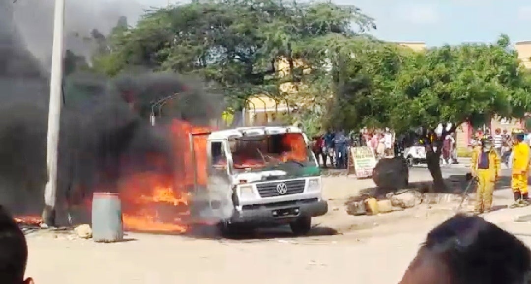 Patrulla de la Policía quemada por contrabandistas de combustibles
