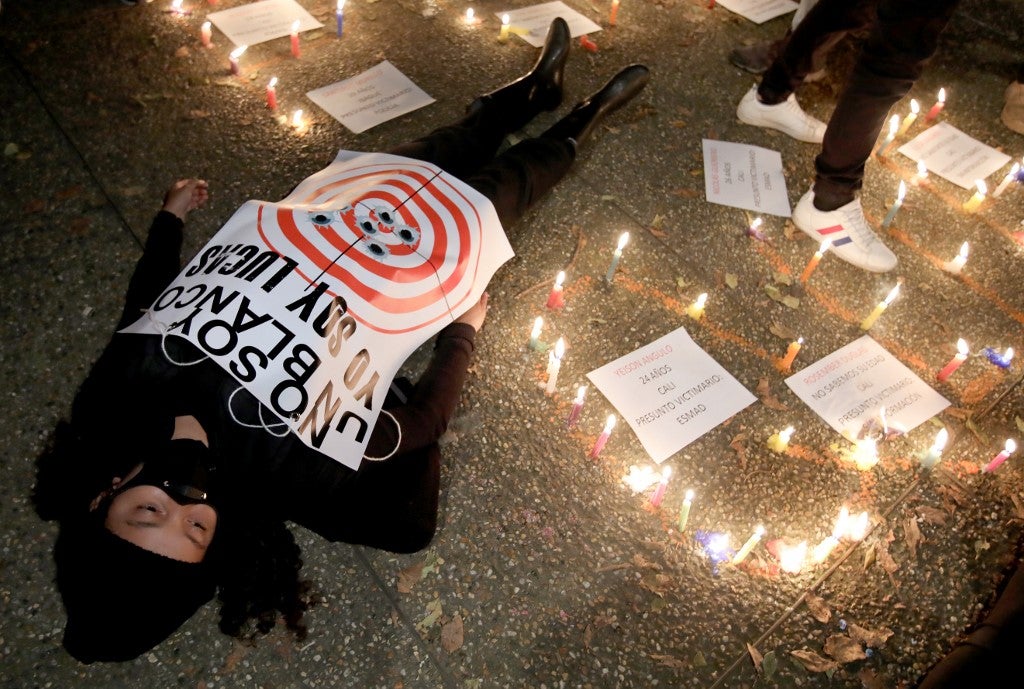 Protesta en contra de los jóvenes que han sido atacados durante las manifestaciones en Colombia.