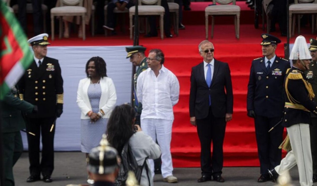 También llamó la atención que el presidente Petro llegó vestido de blanco y con guayabera al desfile militar, rompiendo la tradición de vestir traje formal para la aparición pública del 20 de julio.