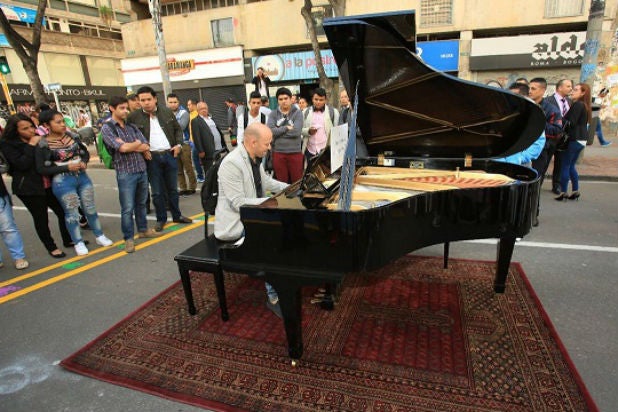 Piano instalado en plena calle del centro de Bogotá causa gran sensación