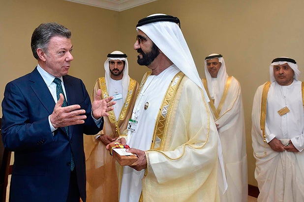Por intermedio del Emir de Dubái, Jeque Mohammed bin Rashid Al Maktoum, el presidente Juan Manuel Santos agradeció a Emiratos Árabes su aporte para el posconflicto en Colombia / Foto de Presidencia