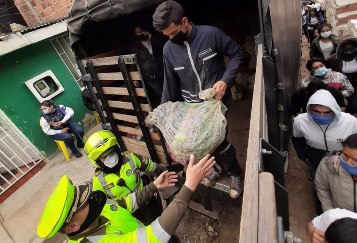 Por ello, miembros de la Policía de Tránsito de Bogotá junto con comerciantes de la Central de Abastos de Bogotá (Corabastos) se unieron y recolectaron mercados que entregaron esta semana a adultos mayores y personas en condición de discapacidad en las zonas más vulnerables de la ciudad.