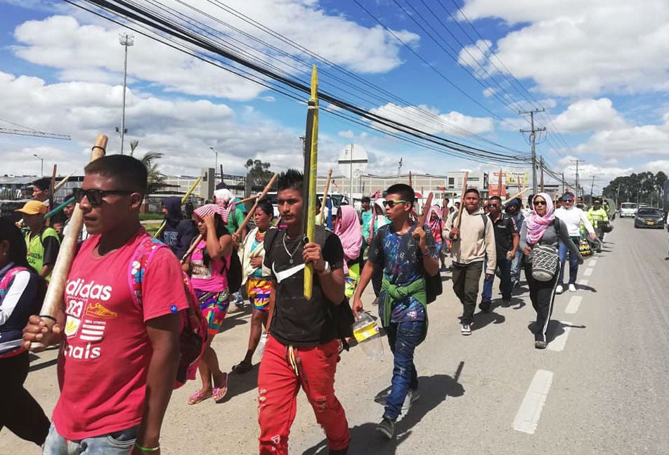 Con el objetivo de exigirle al Gobierno el cumplimiento de los acuerdos pactados en 2017 en el marco de la 'Minga Indígena por la Vida', además de garantías para su supervivencia, más de 450 indígenas llegaron el domingo a la capital del país, entre quienes se encuentran hombres, 11 mujeres embarazadas y 20 y niños.