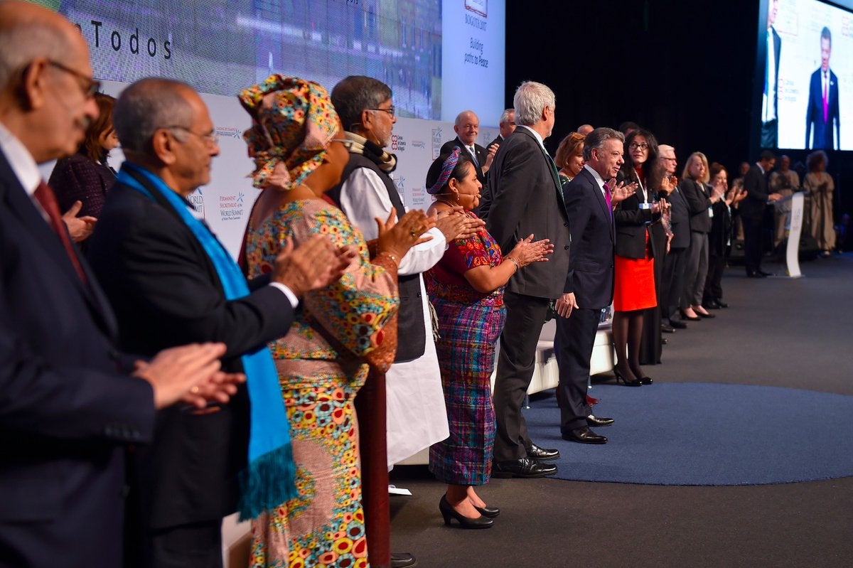Por su parte, Tawakkul Karman, pacifista de Yemen y quien ganó el Premio Nobel de Paz en 2011, resaltó a las víctimas colombianas y rechazó las medidas de Estados Unidos de prohibir la entrada a varios países musulmanes.
