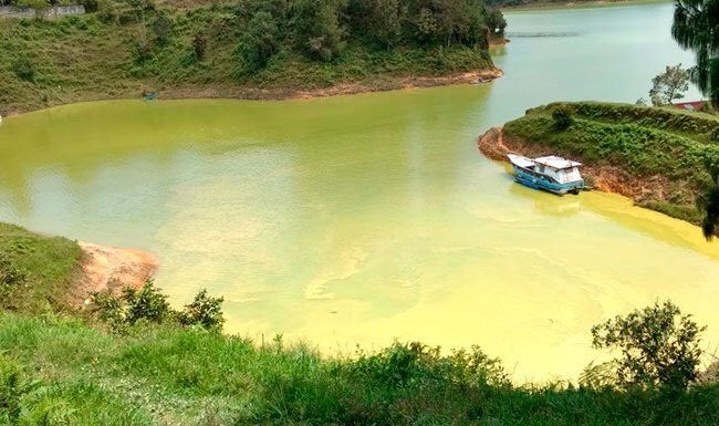 La coloración se presenta en tres sitios del embalse: el puente La Hondita, en la cuenca del Río Rionegro y Nare y quebrada Arriba en Guatapé, Oriente de Antioquia.