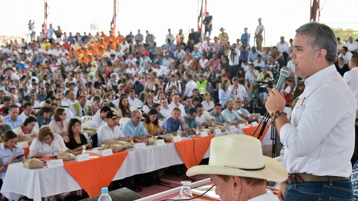 Durante el Taller Construyendo País número 17, que se desarrolló este sábado en San José del Guaviare, el presidente Iván Duque aseguró que la política contra las drogas de su Gobierno también pretende que en los territorios con cultivos ilícitos “tengamos desarrollo alternativo, sustitución y erradicación”.