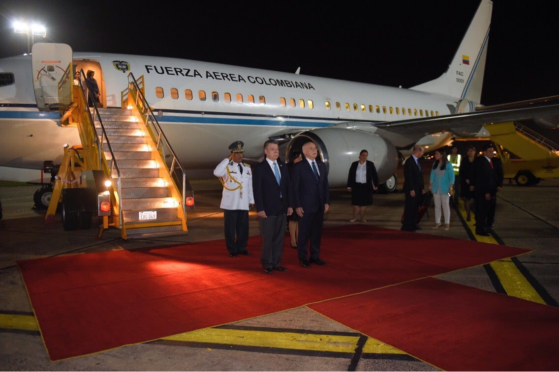 Sobre las 8:00 de la noche hora local (7:00 hora colombiana) llego a Asunción, Paraguay, el Presidente Juan Manuel Santos para iniciar su visita oficial a este país.