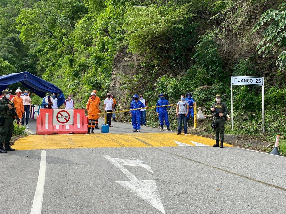 Puntos de control al ingreso de Ituango, Antioquia. Crédito: Facebook Alcaldía de Ituango.