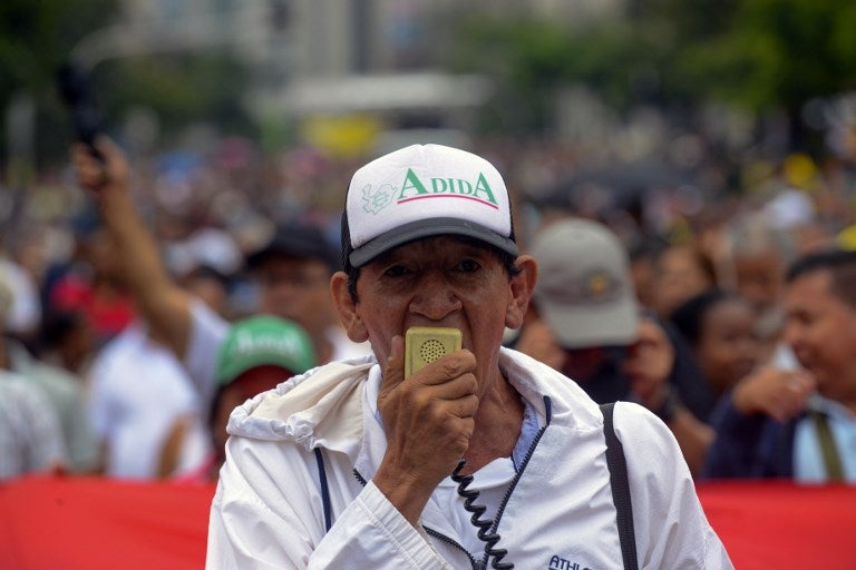 Marcha de profesores en Colombia, exigiendo mejoras laborales. Crédito: AFP