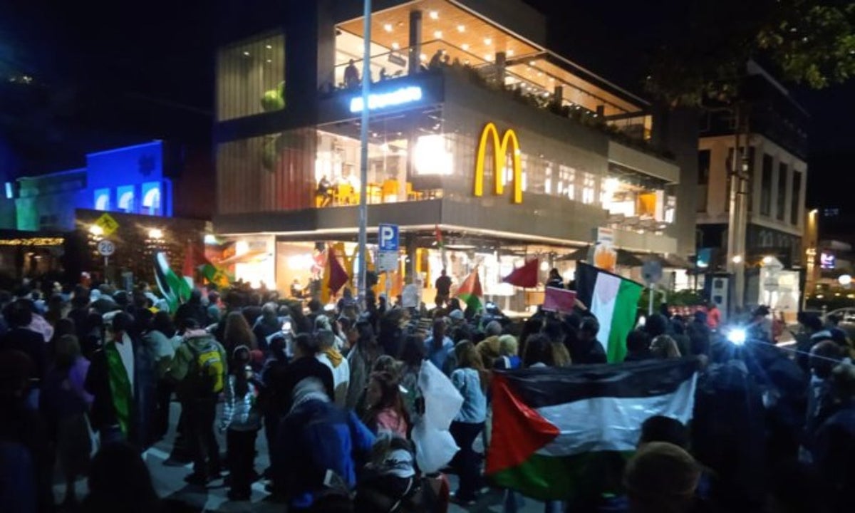 El descontento con la cadena de comidas rápidas se extendió hasta un grupo de personas en Bogotá, que en la tarde noche del sábado 4 de noviembre llegaron al local de McDonald's en el parque de la 93, en el norte de Bogotá, para expresar su apoyo a Palestina.