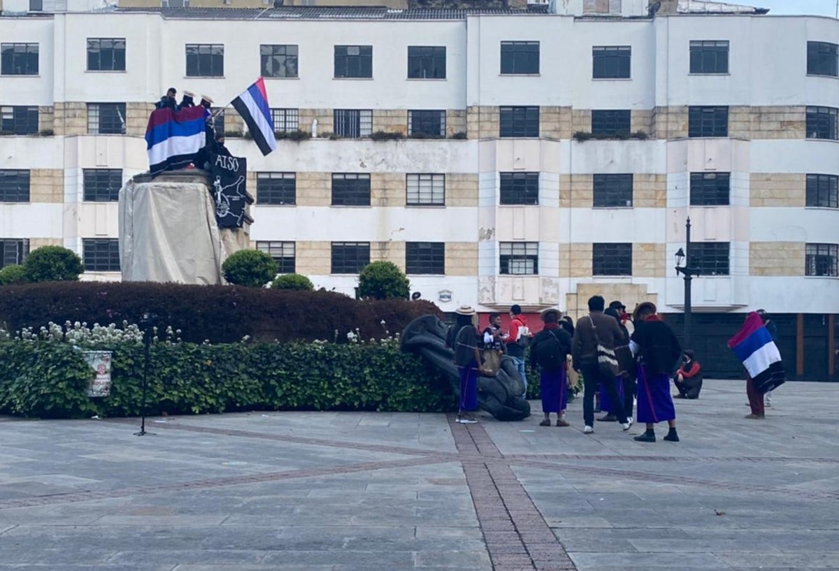 Los argumentos de los indígenas para tumbar la estatua, según señalaron a través de un comunicado, es recuperar uno de sus espacios que llamaron sagrados "que fueron violados, perpetrados y despojados por los sicarios" de la conquista, al referirse a la colonia española.