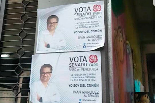 El equipo de LA FMen Caracas tuvo conocimiento de que en las salidas de algunas estaciones del metro de la capital venezolana, se ha puesto propaganda electoral alusiva al exguerrillero Ivan Márquez, al candidato de la Farc al senado para las elecciones al Congreso de Colombia que se realizarán el 11 de marzo.