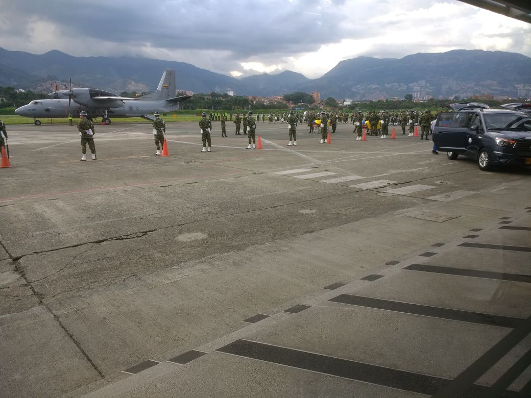 En el aeropuerto Olaya Herrera de Medellín se le rinden honores militares a ocho de las diez víctimas del accidente del helicóptero del Ejército que se estrelló el pasado lunes en la vereda Cuturú del municipio de Segovia, nordeste antioqueño.