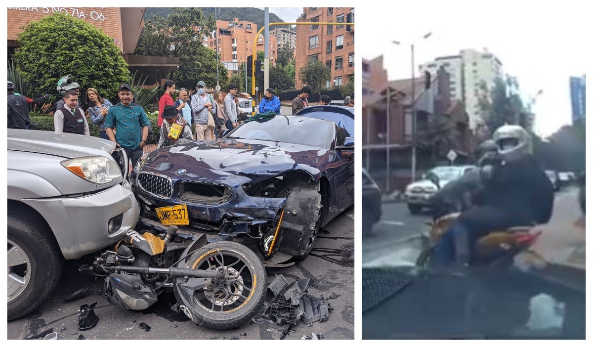 “El auto golpea una camioneta que estaba delante de mí y rebota hacia mí. Coge en sándwich a la moto contra mi camioneta. Los dos ocupantes de la moto se paran y salen corriendo por la Calle 72 y los dos ocupantes del BMW que nos golpeó salen corriendo detrás de ellos y alcancé a ver que aparecía un policía que corría detrás”, agregó Navas.