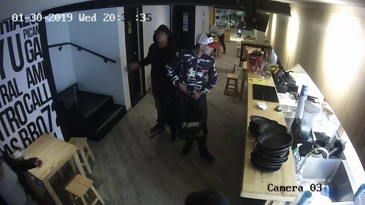 Los sujetos quedaron plenamente identificados en los videos de las cámaras de seguridad de este restaurante dedicado a la venta de alitas de pollo.
