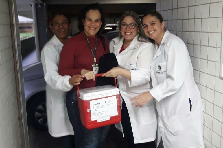 Natalicia Silva, una enfermera del hemocentro de Fortaleza, se ofreció como voluntaria para viajar con la bolsa de sangre y asegurar que, dentro de una nevera, mantuviera la temperatura adecuada durante las más de 20 horas de viaje. Después de hacer escala en Sao Paulo, Panamá y Bogotá, la sangre llegó a las seis de la tarde de ayer al hospital San Vicente.