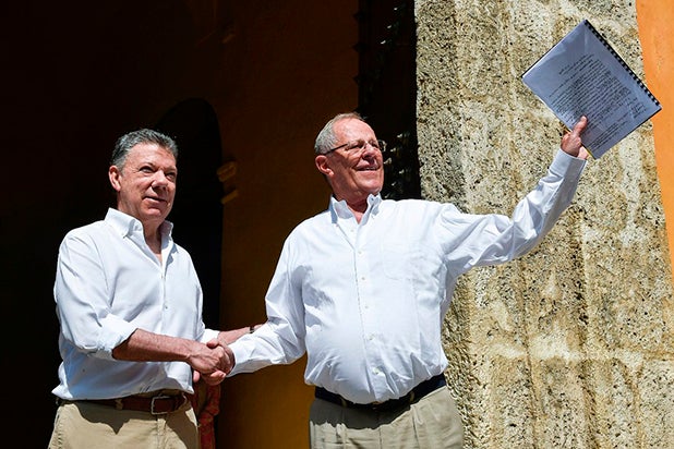Los presidentes Santos y Kuczynski se reúnen en Cartagena para hablar de asuntos ambientales, minero energéticos, comercio, desarrollo económico, turismo, seguridad y defensa, y asuntos fronterizos y migratorios.