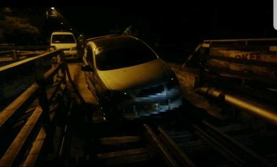“Un vehículo intenta evadir y en una maniobra altamente peligrosa, intenta pasar por un puente férreo, arriesgando de una manera imprudente la vida de él y la de su ocupante”, indicó el coronel Carrero.