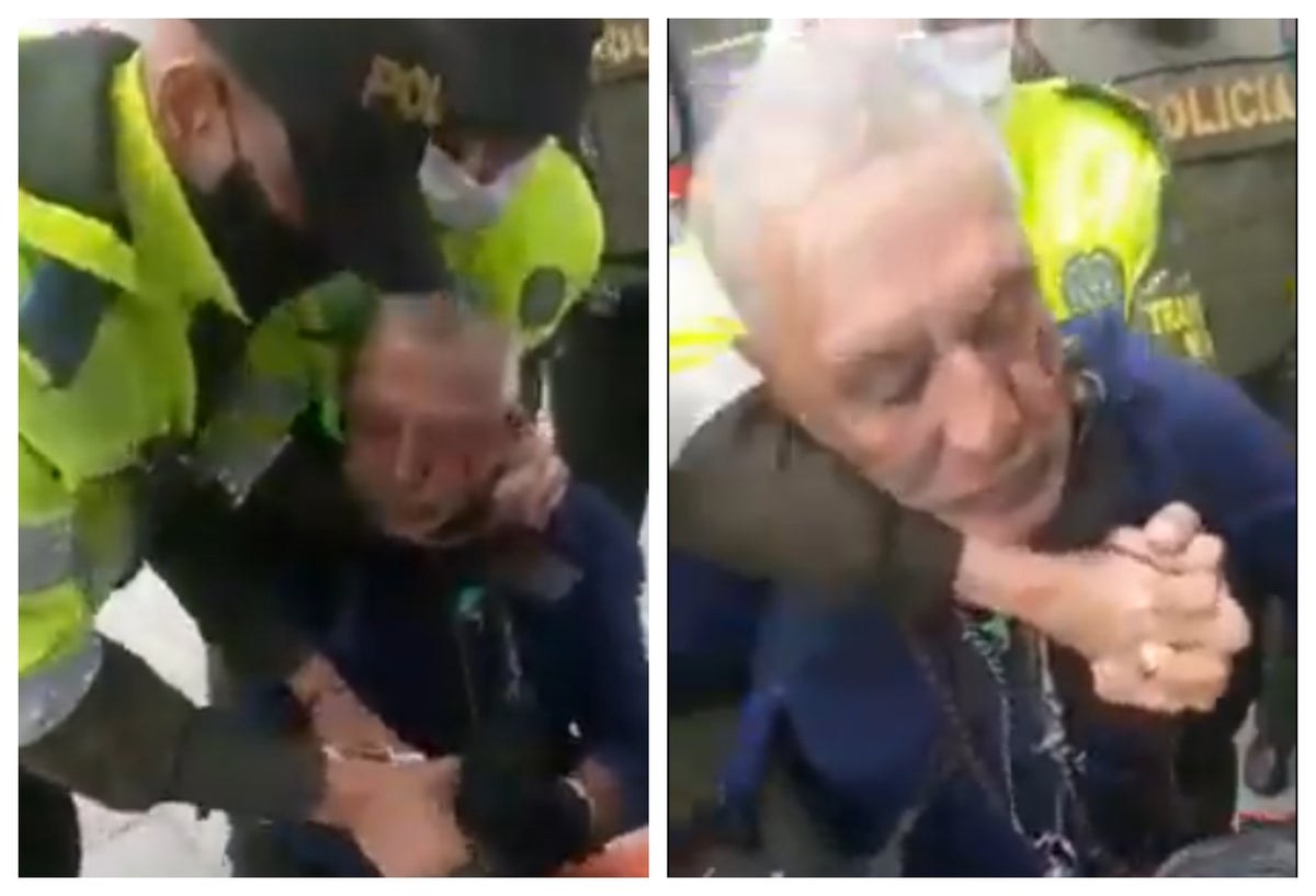 De acuerdo con la persona que realizó la grabación y que sirvió como prueba irrefutable de la cruel agresión, uno de los uniformados fue quien le causó la herida en el rostro a don Néstor.